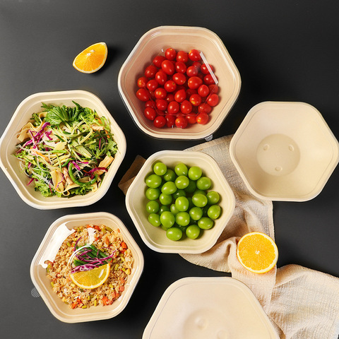 Cuencos de pulpa hexagonales degradables desechables (para ensaladas, comidas ligeras, Bento)